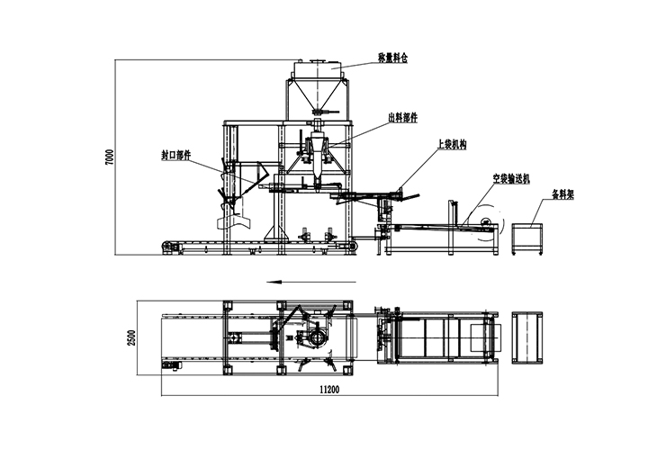 全自動(dòng)機(jī)器上袋氧化鋁噸袋包裝機(jī)主要機(jī)構(gòu):氧化鋁空袋輸送機(jī)構(gòu)、自動(dòng)上袋機(jī)構(gòu)、氧化鋁自動(dòng)稱(chēng)量機(jī)構(gòu)、氧化鋁自動(dòng)灌裝機(jī)構(gòu)、自動(dòng)熱合封口、自動(dòng)噴碼打印、氧化鋁自動(dòng)輸送機(jī)構(gòu)。簡(jiǎn)略圖紙如下: